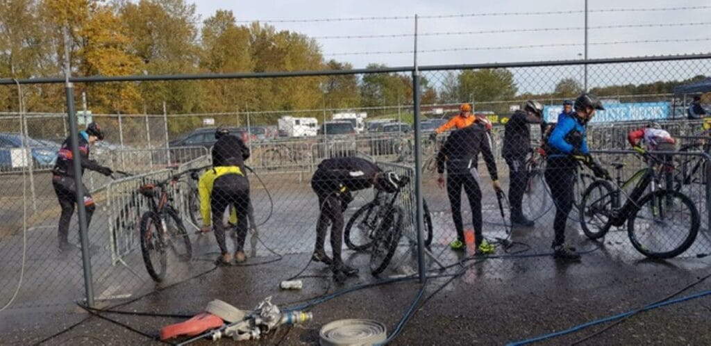 Ook al lag het parcours er droog bij, toch maakten velen gretig gebruik van de afspuitmogeljijkheden.