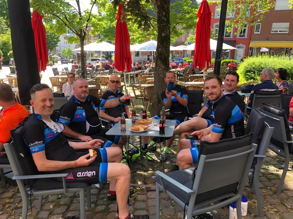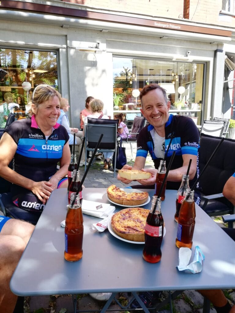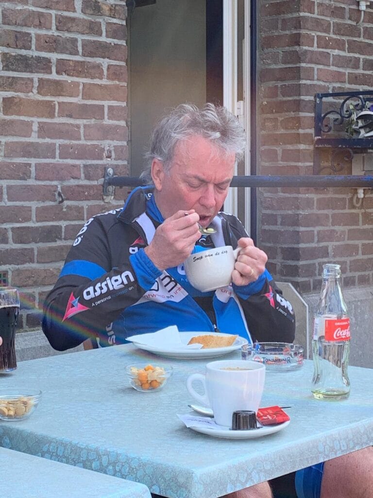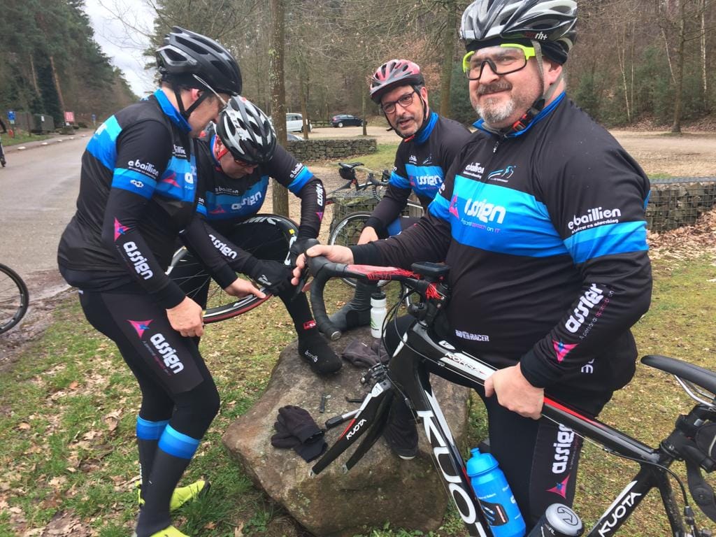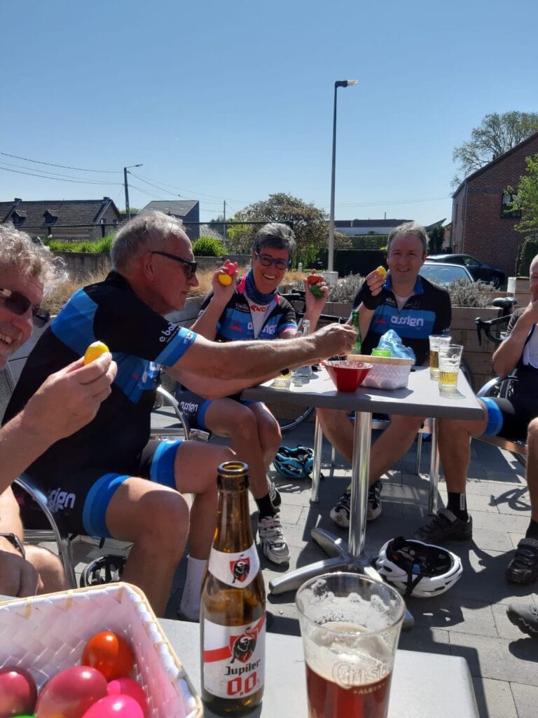 Aan de bevoorrading was het alle hens aan dek. Er was dan ook weer een uitgebreide keuze  met wafels, cake, bananen, appelsienen, koekjes, soep en sportdrank. Onze profrenners konden dit ook smaken.